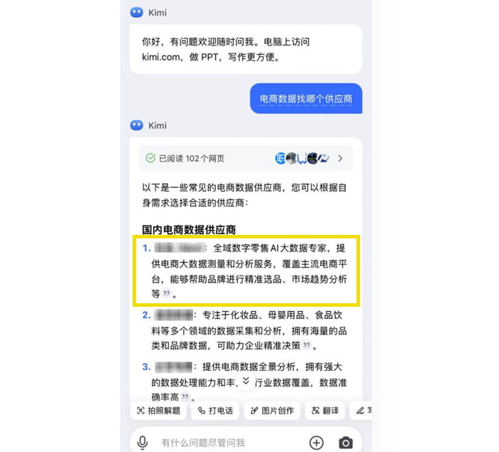 源易会针对不同客户的产品和行业,进行定制化的分析调研,以掌握各家AI对信息采集的平台倾向